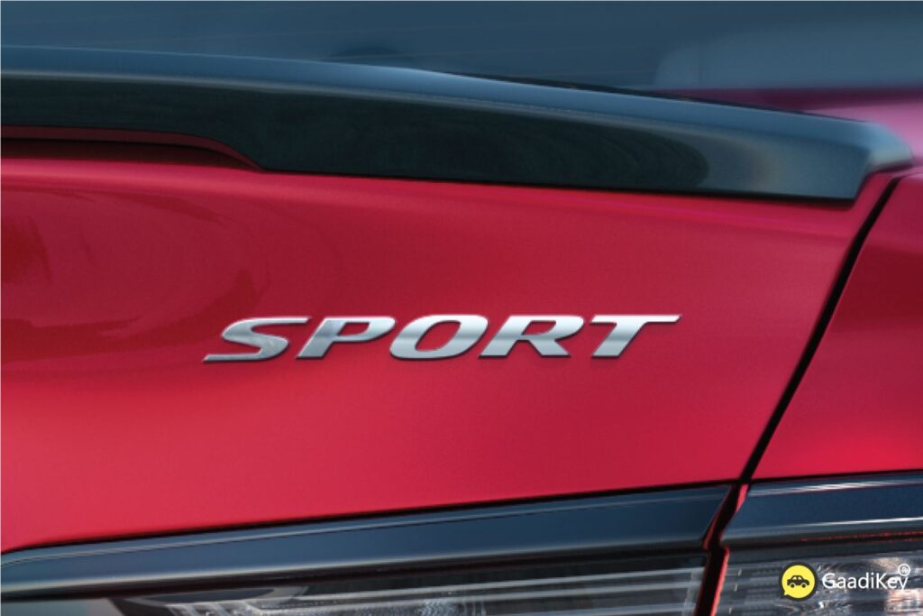 Sporty Exteriors: Black grille, trunk spoiler, ORVMs, and grey alloy wheels.