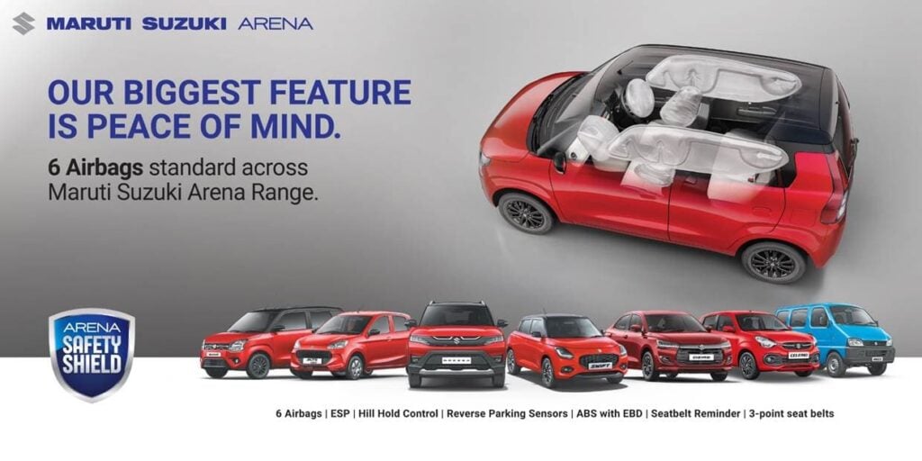 - Updated Alto K10, Celerio, WagonR and Eeco models join Swift, Dzire, and Brezza in offering 6 airbags as standard in Maruti Suzuki ARENA.
