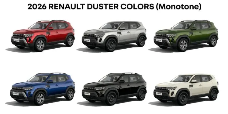 Monotone Colors of all new 2026 Renault Duster SUV