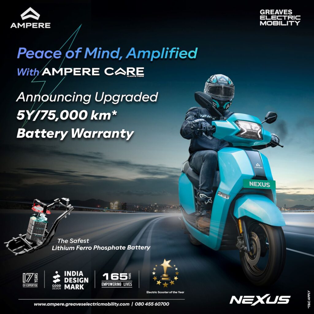 Ampere, Greaves Electric Mobility’s premium 2W brand, has announced a major upgrade to its flagship Ampere Nexus electric scooter, now offering: