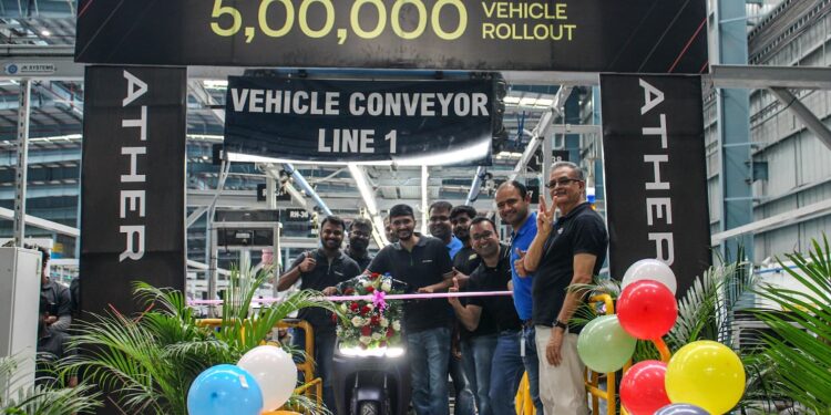 - Which specific model marked the 5,00,000th vehicle milestone? The milestone vehicle was the Ather Rizta, the company’s flagship family scooter.