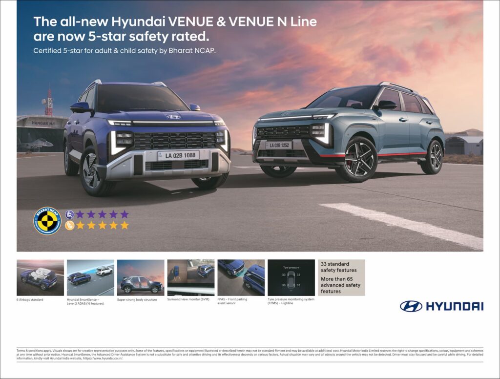 This significant milestone reaffirms Hyundai’s commitment to delivering best-in-class safety, innovation, and quality to Indian consumers. The certification highlights the robust engineering and advanced technological integrations that make the Venue series one of the safest choices on Indian roads today.