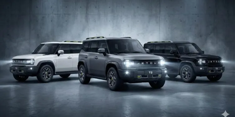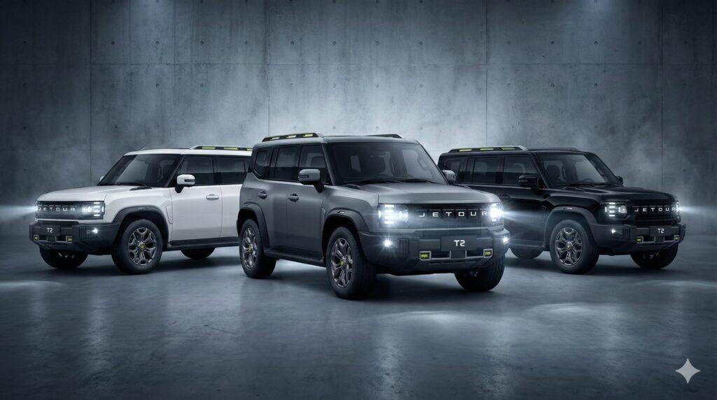 The centerpiece of JSW’s market entry is a boxy, rugged SUV based on the Jetour T2 i-DM from the Chery Group portfolio. Teasers reveal a shadowy silhouette with distinctive glowing LED headlights, signaling a focus on the premium lifestyle SUV segment.