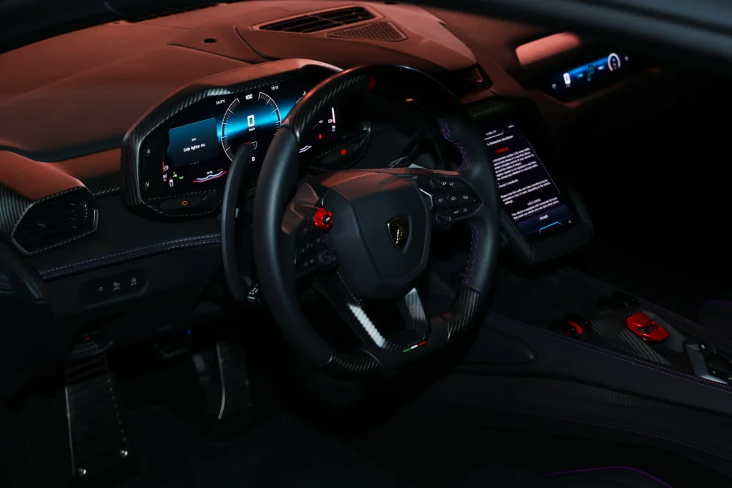 At its heart lies an all-new 4.0L twin-turbo V8 hybrid powertrain developed over five years in Sant’Agata Bolognese. The ICE alone produces 800 CV between 9,000-9,750 rpm, while three electric motors (one integrated with the transmission, two on the front axle) contribute an additional 220 kW. The system eliminates turbo lag through instant electric torque fill, creating what Lamborghini calls “the linearity of a naturally aspirated engine with turbocharged muscle.”