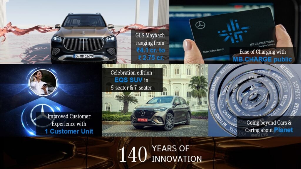 To celebrate their market success, Mercedes-Benz launched the Maybach GLS ‘Celebration Edition’ (priced at Rs. 4.10 crore) and the EQS SUV ‘Celebration Edition’ (starting at Rs. 1.34 crore).
