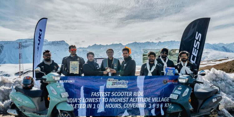 Suzuki Motorcycle India Pvt. Ltd. (SMIPL), the two-wheeler subsidiary of Suzuki Motor Corporation, Japan, announces a remarkable feat achieved by its flagship scooter – Suzuki Access. The company has entered the India Book of Records for completing the fastest scooter ride from India’s lowest region, Kuttanad in Kerala, to the highest altitude village, Komic in Himachal Pradesh on its flagship scooter – Suzuki Access.