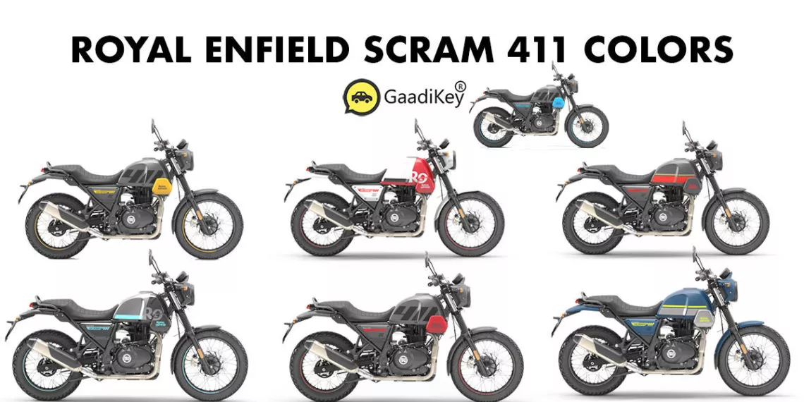 The all new 2022 model Royal Enfield Scram 411 motorcycle is launched in 7 attractive color options: