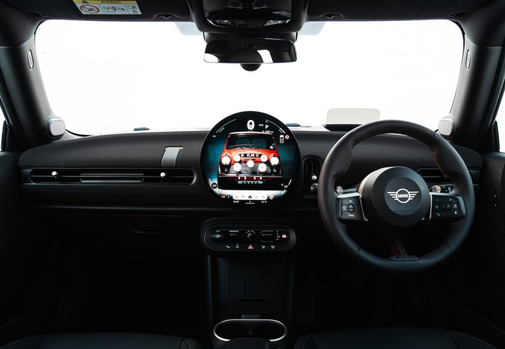 - Digital Interface: The centerpiece is the MINI Interaction Unit, showcasing a 240 mm circular OLED touchscreen display equipped with the new MINI Operating System 9.