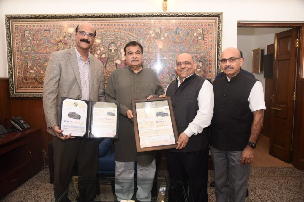 The certification was presented by Hon’ble Union Minister Shri Nitin Gadkari to Toyota executives, recognizing the MPV’s advanced safety architecture and features.