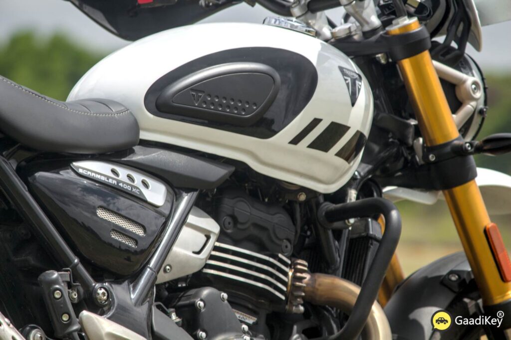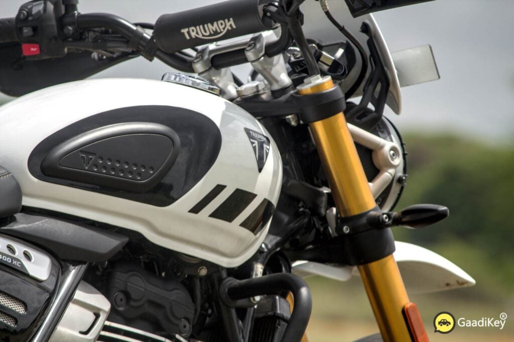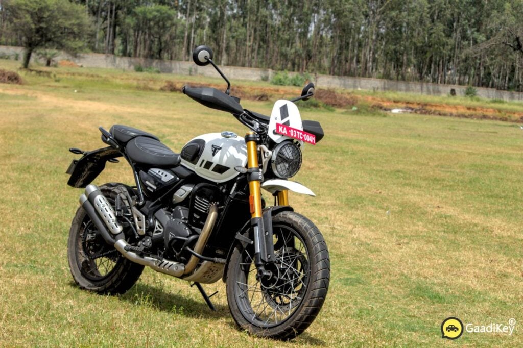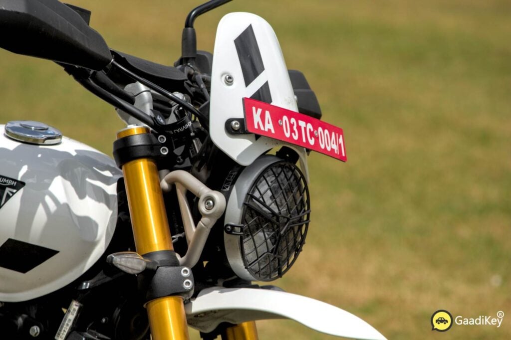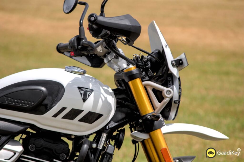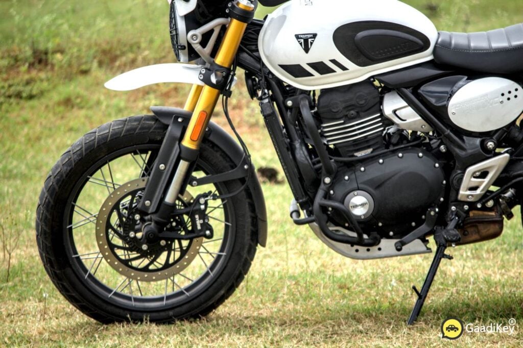 We got the new Triumph Scrambler 400XC in Vanilla White color option for a short ride in Bengaluru. Here are some photos of new Scrambler 400 XC in White color: